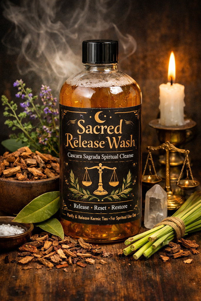 Crafted as a powerful tool for energetic release, Sacred Release Spiritual Wash is designed to cleanse spiritual residue, remove stagnant energy, and restore balance after emotional, spiritual, or karmic heaviness. This wash is rooted in ancestral wisdom and intentional herbal work, combining four sacred plants traditionally used for purification, justice, and renewal.